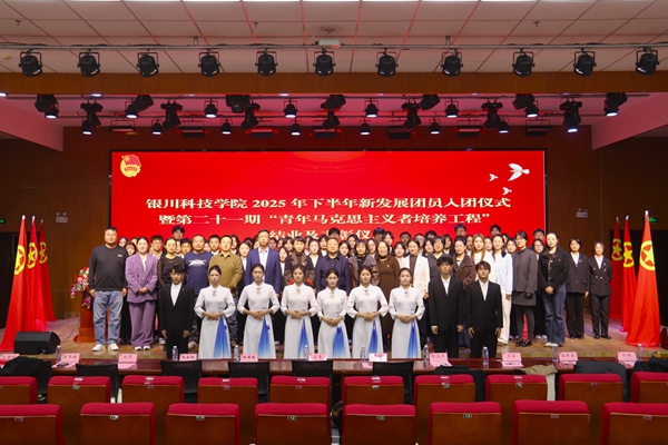 银川科技学院2025年下半年新发展团员入团仪式暨第二十一期“青年马克思主义者培养工程”结业及表彰仪式在图书馆六楼报告厅举行。
