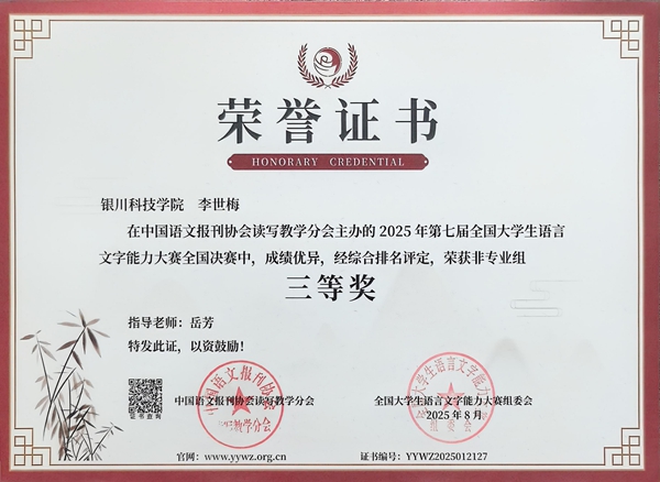 近日,随着全国决赛成绩正式公布,2025年第七届全国大学生语言文字能力大赛正式落下帷幕。作为本次大赛协办单位,我校高效组织、精细筹备,为赛事顺利推进筑牢坚实保障。