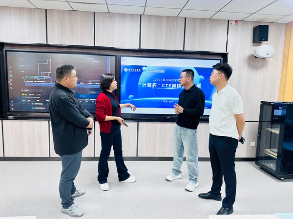 以赛砺技筑网安,实践育人启新程。为积极响应国家网络安全宣传周号召,推动学院实践教学改革与网络安全人才培养深度融合,实现“以赛促学、以赛强能”的网络安全人才培养目标与实践教学改革深化路径。9月24日,学校与新E代数智未来产业学院联合举办第一届“计智杯”CTF网络安全大赛。学校图文信息中心主任付春燕、计算机与人工智能学院党总支书记、副院长李华、副院长黄磊、云计算大数据学习中心主任宗世钰以及教师代表、参赛选手参加。