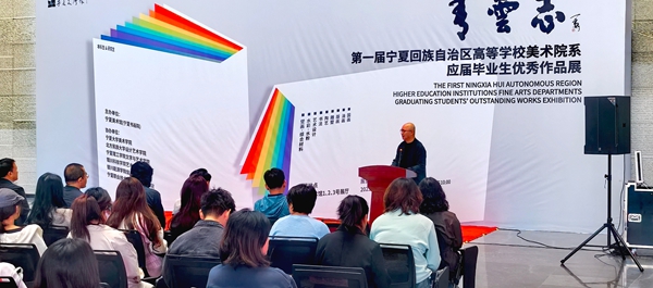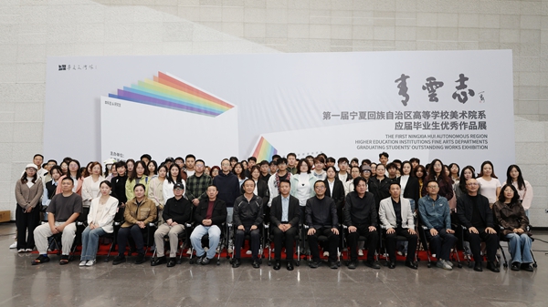 9月26日,由宁夏美术馆(宁夏书画院)主办的 “青云志” 第一届宁夏高校美术院系毕业生优秀作品展,在宁夏美术馆正式拉开帷幕。本次展览由新视界设计产业学院组织,来自全区6所高校美术院系的青年学子齐聚一堂,以充满创造力与青春激情的作品,点亮了美术馆展厅。我校艺术学院百余名师生参与此次活动,副校长景天时,艺术学院副院长马莉颖,教研室主任强秋月及专职教师贺榆茂应邀出席,共同见证这场属于宁夏新时代青年的艺术盛宴。