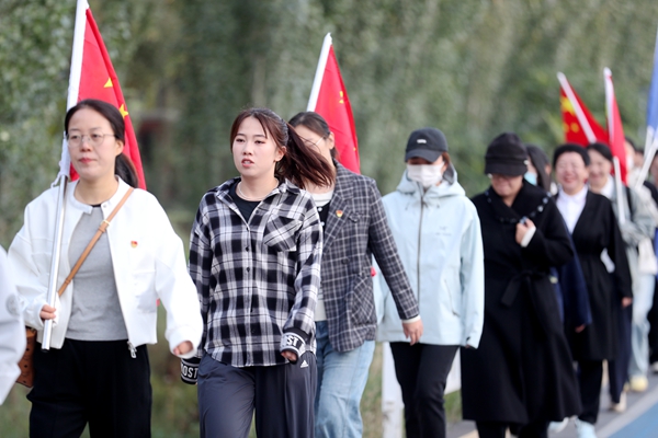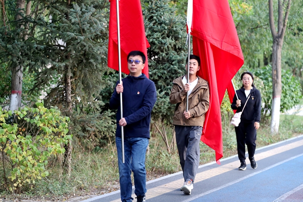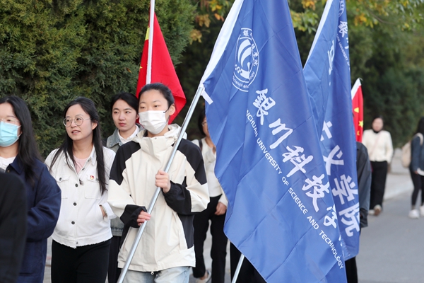 清晨6时40分,马克思主义学院党总支便已组织好参与活动的队伍。作为学校思政教育的核心力量,马克思主义学院始终秉持“以红色文化铸魂育人”的理念,此次特意选择清晨时段开展活动,旨在让师生在宁静肃穆的氛围中,更深刻地感悟革命先烈的牺牲精神。校长白克义、学院党总支书记伏晓春、副书记黄炎带队与30余名教师党员、学生代表一同踏上徒步前往宁夏解放纪念碑的路程。徒步途中,教师党员们结合宁夏本地革命历史,向学生代表讲述先烈们为解放宁夏浴血奋战的故事,让红色教育在行走中悄然浸润心灵。