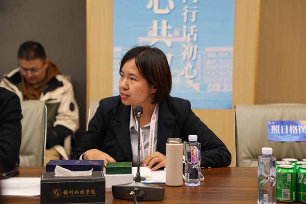 2013届英语专业毕业生、现任河北工程大学校史馆副馆长的张璇,以校友身份满含深情地回顾了在银科的求学时光。她不仅分享了自身职业发展历程,现场递交了一份近3000字的《关于银川科技学院高质量发展的建议报告》,从学科建设、人才培养等方面为母校建言,尽显对母校发展的关切。2017届毕业生宝哲博士则讲述了自己从银科出发的求学进阶之路,坦言母校的培养为其学术研究奠定了坚实基础,并明确表示未来将充分发挥自身学术优势,为母校学科建设与科研发展贡献力量。2024届校友王媛媛回忆起大学期间代表学校参加世界大学生运动会的难忘经历,动情地说:“是母校给了我成长的平台与勇气,这份记忆会永远激励我前行。”2013届工商管理专业毕业生吴洋则聚焦学校创新创业工作,提出愿意整合自身资源与校友力量,搭建合作平台,助力母校创新创业教育再上新台阶。