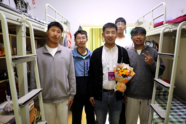 宿舍区同样热闹非凡。2018届校友张春雨、徐建宁,2022届校友陈家宝在志愿者的引导下,回到了生活四年的宿舍。推开宿舍门,几位“新室友”早已等候在此,他们围坐在一起,听学长学姐讲述当年深夜卧谈的趣事、考前互助复习的温暖,新老学子的笑声交织,让宿舍满是青春的延续感。