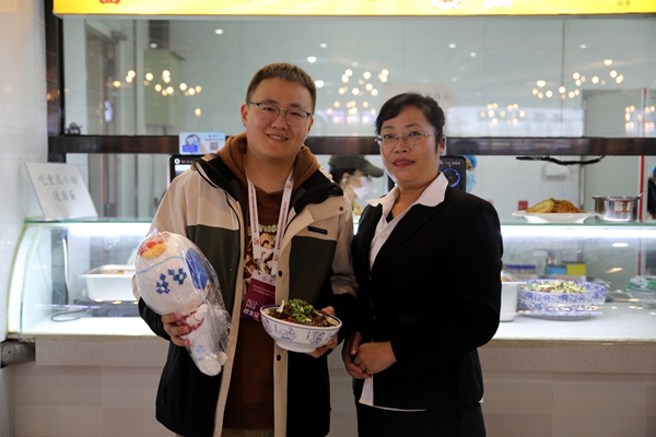 食堂里,熟悉的香气勾起了舌尖上的记忆。2022届陕西校友会校友曹益帆径直走向熟悉的窗口,点了一碗大学期间最爱的一品刀削面。当热气腾腾的面条端上桌,熟悉的麦香裹挟着青春记忆扑面而来,他一边品尝,一边与窗口师傅寒暄,仿佛又回到了四年前排队打饭、与同学分享美食的日子。