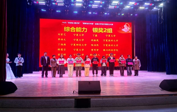 近日,2025“外研社・国才杯”“理解当代中国”全国大学生外语能力大赛宁夏赛区决赛在宁夏理工学院圆满落幕。我校学子在赛事中表现突出,最终斩获4项银奖、11项铜奖,充分展现了扎实的语言功底与出色的综合能力。