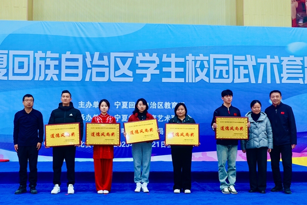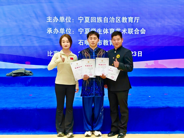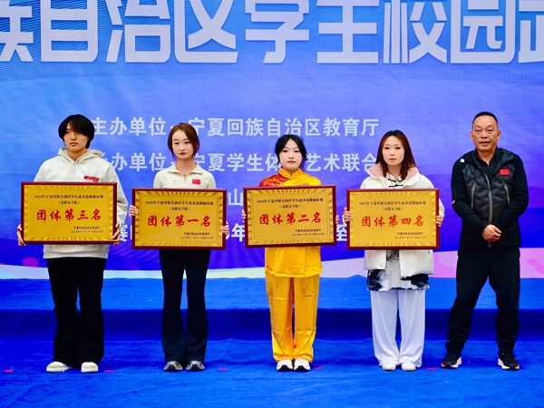 11月23日,由宁夏回族自治区教育厅主办、宁夏学生体育艺术联合会和石嘴山市教育局承办的2025年全区学生武术套路锦标赛圆满落幕。本次赛事汇聚全区25支代表队的300余名运动员同场竞技,学校武术队派出27名学子,在拳术、器械两大类共9小类的76个单项中奋勇拼搏,最终以15金9银10铜、27个4-8名的亮眼成绩惊艳赛场,不仅以333分斩获团体总分第一名与冠军总数第一名,更包揽高职组女子团体总分第一名、高职组男子团体总分第二名、大学阳光组女子团体总分第二名、大学阳光组男子团体总分第三名,赛事组委会为我校武术队颁发了“道德风尚奖”荣誉,得到了组委会的认可和肯定,创下校武术队成立以来参赛人数最多、获奖成绩最好的历史新纪录。