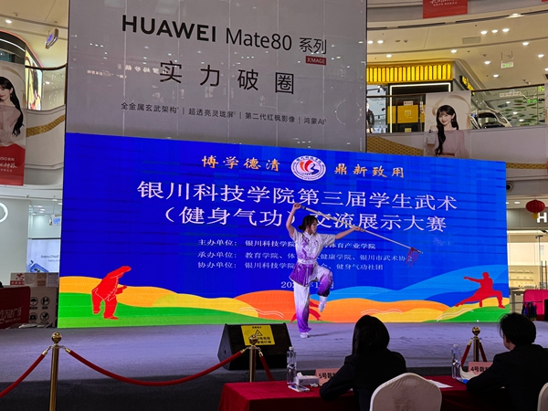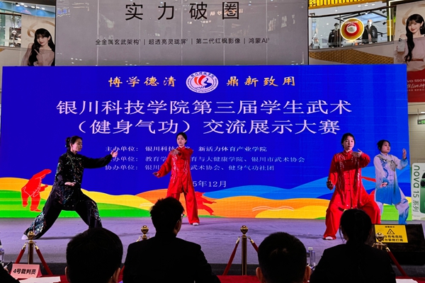 12月21日晚,银川西夏万达广场内灯火璀璨,掌声雷动。我校第三届学生武术(健身气功)交流展示大赛在此精彩上演,130余名学子以拳术彰显底蕴,以器械挥洒豪情,用一场传统体育盛宴诠释了中华优秀传统文化的魅力。