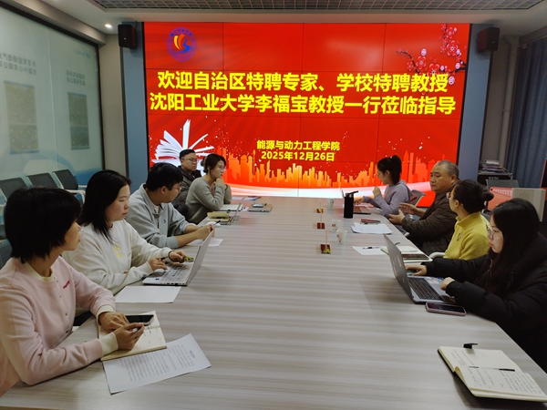 12月26日上午,自治区特聘专家、沈阳工业大学化工装备学院原院长李福宝教授,霍英妲博士一行莅临能源与动力工程学院指导交流。学院教学副院长张凤、学院办公室杨廷奇及学院核心科研团队成员十余人参与本次交流座谈,会议在VR双创人才潜质评估与发展中心顺利召开。