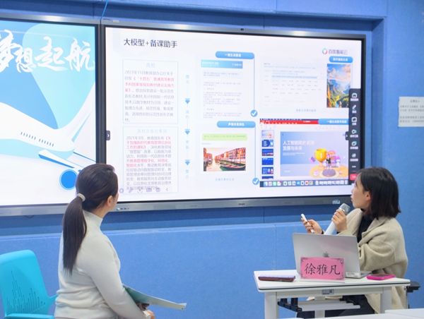 在AI助力高等教育的沙龙互动中,教师代表围绕AI在课程设计与教学中的应用、AI在科研辅助与数据分析中的作用展开对话探讨。徐雅凡分享了百度在高等教育应用场景的实际案例,阐述AI技术在提升教学质量和科研效率方面的巨大潜力和发展趋势,与会教师代表对AI技术在教育教学方面表现出浓厚的兴趣,并对实际使用过程中的问题展开讨论。
