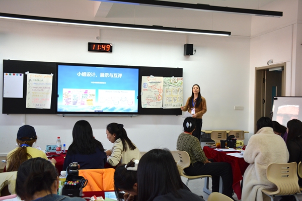 参训教师们通过设计个性化姓名贴、开展教学故事接龙、协作完成小组海报等环节,在短时间内相互熟悉,建立起开放、互助的学习共同体,打破了学科界限和人际隔阂,激发了参与热情和创新思维,为后续的学习奠定了良好的心理基础和团队协作基础。在专题讲解环节,官海萍系统阐释了BOPPPS教学模式的起源、发展历程及其在国际高等教育领域的应用情况。结合文科、理科、技能类课程的典型教学案例,对比分析传统教学模式与BOPPPS模式的差异,帮助教师们建立起系统化的教学设计思维。