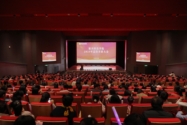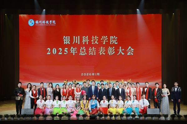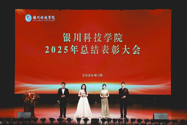 岁序更替,华章日新。2026年1月14日,银川科技学院2025年总结表彰大会在学校剧场隆重举行。校领导任昱、索峰、刘雄飞、王亮、赵心泽,宁夏演艺集团剧院管理有限公司副经理张珊珊,学校优秀合作单位代表及全体教职员工齐聚一堂,共同回顾2025年砥砺奋进的辉煌历程,表彰为学校发展作出突出贡献的先进集体与个人,共绘2026年高质量发展的崭新蓝图。