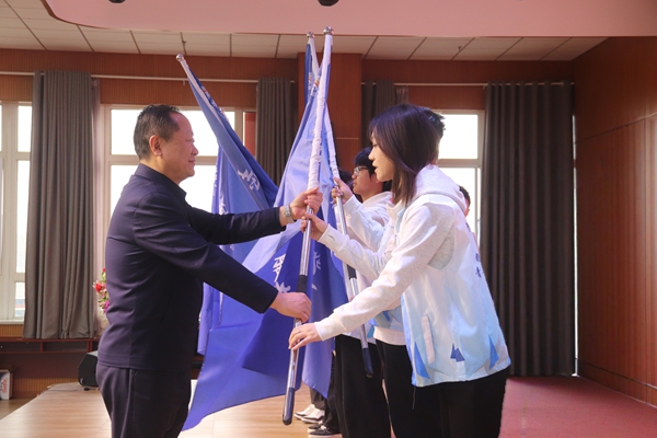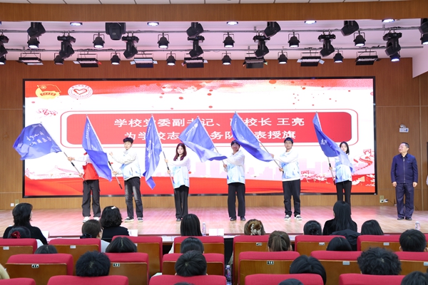 仪式上,党委副书记、副校长王亮为暖食伴夕阳、文筑乡馨、数耕兴农等12支校级志愿服务队代表授旗。飘扬的队旗既是荣誉,更是使命,激励各团队以更坚定的信念投身志愿服务。