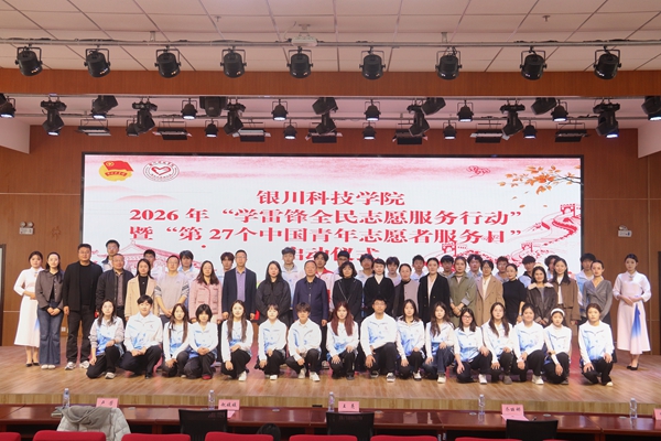 春风送暖,薪火相传,雷锋精神熠熠生辉。为弘扬雷锋精神,培育青年学生社会责任感,推进校园精神文明建设。3月4日,“学雷锋,做志愿,共同奋进‘十五五’”银川科技学院2026年“学雷锋全民志愿服务行动” 暨第27个中国青年志愿者服务日启动仪式举行。学校党委副书记、副校长王亮,党委学生工作部部长、学生工作处副处长赵媛媛,党委办公室副主任、社会公益学院执行院长乔丽娜,校团委书记卢芳,学生工作部副部长、学生工作处副处长陈骏驰,发展规划与科研处处长助理李芳及各学院团总支书记、副书记出席仪式,全校青年志愿者代表齐聚现场。仪式由校团委副书记冀伟主持。