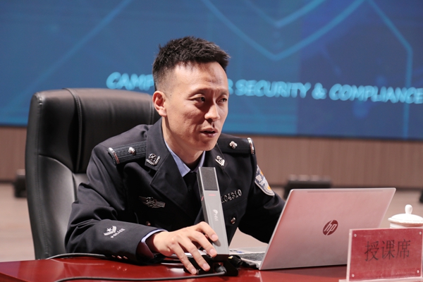 宣讲环节中,西夏区公安分局高校派出所民警王潇率先围绕反诈防骗主题开讲。他结合高校领域高发的电信网络诈骗真实案例,深入拆解网络刷单返利、虚假校园贷、冒充老师/同学借钱等常见诈骗套路,细致讲解识别技巧与防范方法,反复叮嘱师生牢记“不轻信、不透露、不转账”的反诈准则,切实提升自身反诈防骗意识和应急处置能力。