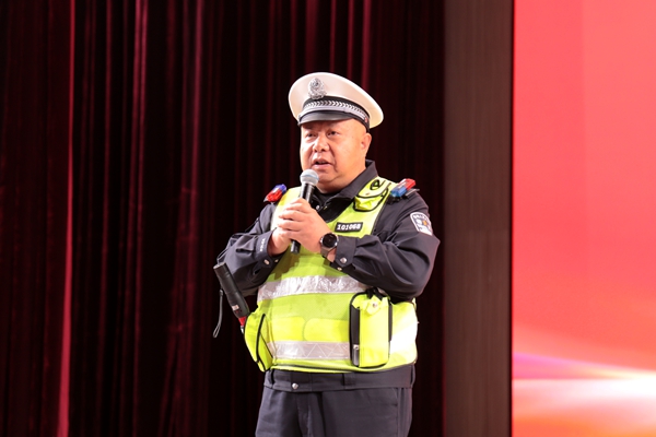 活动最后,银川市公安局交通管理支队民警杨鸿胜围绕交通安全主题开展专题宣讲。他结合近年来发生的青少年交通事故典型案例,深入解读《中华人民共和国道路交通安全法》相关条款,详细讲解学生步行、骑行电动车、乘坐机动车等日常出行场景中的安全注意事项,以案例警示敲响安全警钟,引导广大学生严守交通规则、守护青春平安。