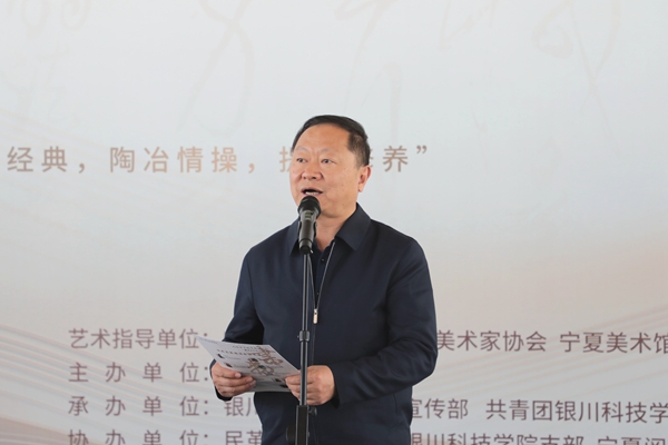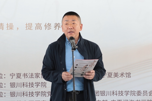 宁夏美术家协会副主席兼秘书长马惟军在致辞时对我校重视美育教育、深耕文化育人的做法给予充分肯定。他讲到,书画艺术源远流长、薪火相传,青年学子是传统文化传承发展的新生力量,希望以本次活动为纽带,让传统艺术扎根校园沃土,让师生在笔墨丹青中陶冶情操、涵养正气,汲取传统文化精神力量。