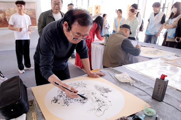 交流笔会环节氛围雅致热烈。十位书画名家现场挥毫泼墨、即兴创作,运笔行云流水,落墨气韵生动。一笔一画藏底蕴,一皴一染见匠心,一幅幅书法作品笔力遒劲、格调高雅,一幅幅国画作品意境悠然、生动传神。现场师生近距离观摩名家创作过程,认真聆听艺术讲解,主动请教书画技法,近距离感受传统书画的艺术精髓。名家们还与师生亲切互动,耐心答疑解惑,分享创作理念与研习心得,沉浸式的艺术交流让现场师生受益匪浅。