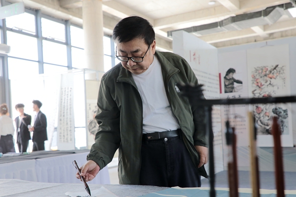 副理事长任昱在致辞中表示,书画艺术是中华优秀传统文化的瑰宝,是涵养品格、浸润心灵的重要美育载体。学校始终坚守立德树人根本任务,深耕校园文化建设,持续推动中华优秀传统文化进校园、进课堂、进生活。本次书画展暨交流笔会搭建了专业艺术家与师生面对面交流的优质平台,有助于引导广大师生感悟笔墨匠心、提升审美素养、坚定文化自信。