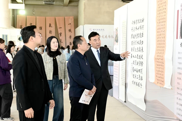党委副书记、副校长王亮宣布书画展暨交流笔会正式拉开帷幕。仪式结束后,十位书画名家与师生一同参观书画作品展。本次展出作品题材丰富、风格多样,涵盖楷书、行书、草书、国画山水、花鸟、人物等诸多品类。作品笔墨精妙、意境悠远,既有对经典传统文化的致敬,也饱含新时代的审美表达,充分展现了书画艺术的独特魅力与深厚底蕴。